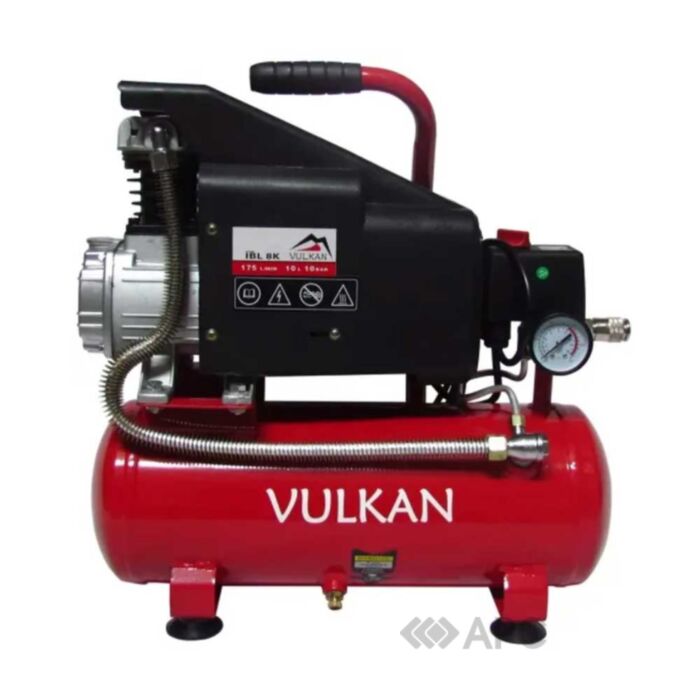 Vulkan IBL8K – модель компресора, який чудово підходить для забезпечення роботи в невеликій майстерні або для виконання завдань вдома. Повітряний компресор потужністю 1100 Вт створює робочий тиск близько 10 бар, що є оптимальним показником для більшості інструментів з повітряним приводом. Продуктивність апарату складає 175 л/хв, об'єм ресивера 8 л. Компресор робить доступною прекрасну альтернативу електричному інструменту. Пневмоінструмент володіє значним моторесурсом, більш довговічний і легше своїх аналогів з електричним приводом. Компресор важить 12 кілограм.