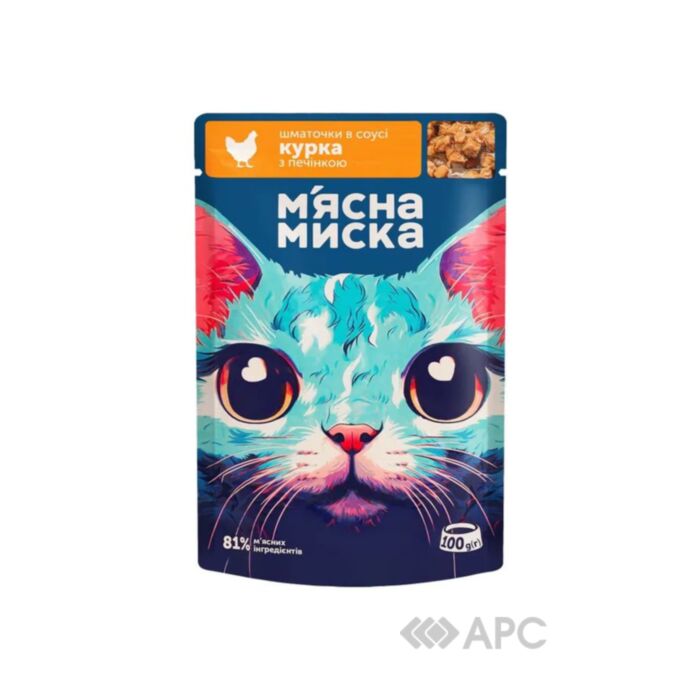 Корм для котів М'ясна миска шматочки курятини та печінки в соусі 100 г є повноцінним поєднанням ніжних м'ясних інгредієнтів, створеним для щоденного харчування дорослих котів. Використання курятини забезпечує організм тварини високоякісним білком, що легко засвоюється, а додавання печінки збагачує раціон життєво важливими вітамінами та мікроелементами, що позитивно впливають на загальне самопочуття та активність вихованця. Апетитні шматочки в густому соусі мають привабливий смак і аромат, які спонукають до споживання навіть вибагливих тварин. Продукт містить необхідний комплекс мінералів для підтримки здоров'я кісток, зубів та блискучої шерсті. Соковита консистенція соусу допомагає коту отримувати додаткову порцію вологи, що є критично важливим для профілактики захворювань сечовидільної системи та підтримки водного балансу. Корм не містить штучних барвників, консервантів та підсилювачів смаку, що гарантує високу якість і безпеку щоденного споживання.