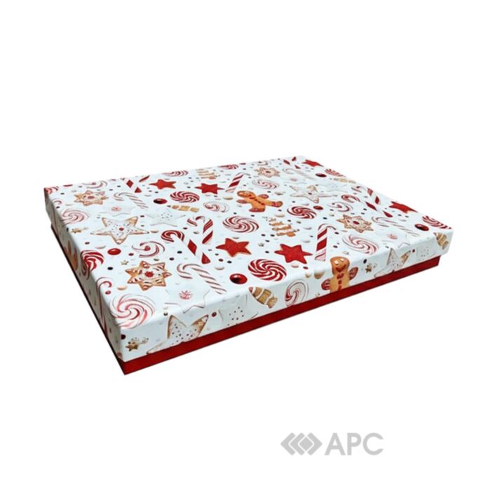 Коробка подарункова Дім Упаковки Різдвяні солодощі 180423693 38,5*27,5*6,5 см – це спеціалізована упаковка, призначена для святкового оформлення подарунків, особливо до Нового року та Різдва. Вона підходить для пакування невеликих сувенірів, косметики, солодощів, невеликих аксесуарів, ювелірних виробів або наборів чаю/кави. Коробка прикрашена яскравими зображеннями різдвяних ялинок. Дизайн одразу створює відчуття свята та дарує естетичне задоволення. Виготовлена з міцного картону, який забезпечує надійний захист вмісту та добре тримає форму.