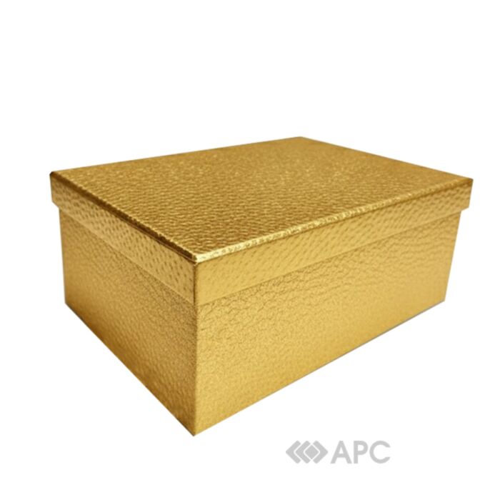 Коробка подарункова Дім Упаковки Золотий блиск 1110109609 35*27*15,5 см - це стильна святкова коробка стане чудовим доповненням до вашого подарунка. Вона ідеально підкреслює його цінність, додаючи особливу нотку очікування свята. Завдяки насиченому кольору та елегантному виконанню, ця упаковка стає повноцінною частиною вашого новорічного привітання. Міцна конструкція забезпечує надійне зберігання вмісту, а охайний дизайн додає подарунку завершеного вигляду. Така упаковка неодмінно створить враження турботи й уваги до деталей.