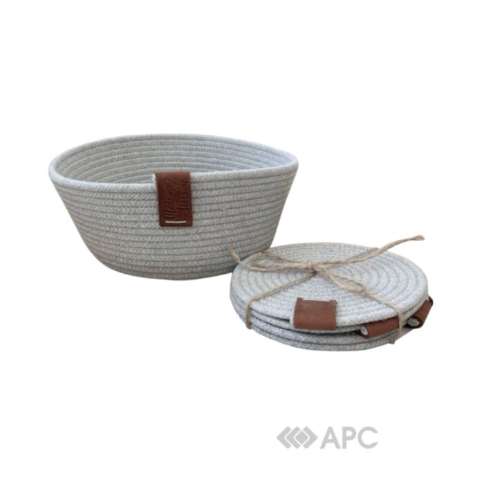 Кошик бавовняний Diy + підставки під склянки 4 шт – це витончений елемент ручної роботи, що поєднує естетику і функціональність. Кошик, виготовлений зі 100% бавовняного шнура, ідеально підходить для зберігання хліба чи солодощів, додаючи природного затишку вашому столу. Оздоблений бирками з натуральної шкіри, він виглядає стильно та органічно. У комплекті також є чотири підставки під склянки, виконані з такого ж матеріалу, що забезпечує гармонійне поєднання і довершеність набору. Це чудовий вибір для тих, хто цінує якісні, ексклюзивні та екологічні вироби.