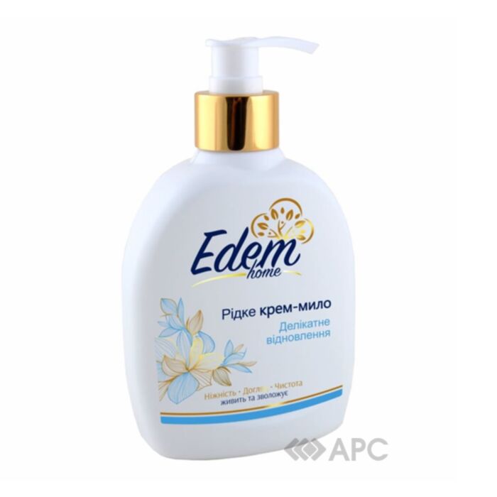 Крем-мило рідке Edem Home Делікатне відновлення 300 мл – це ніжний засіб для щоденного догляду за шкірою рук, розроблений для ефективного очищення та водночас інтенсивного зволоження та відновлення. Воно ідеально підходить для частого використання, оскільки не лише очищає, але й піклується про шкіру, запобігаючи її сухості та подразненням. Містить гліцерин для глибокого живлення та зволоження, шкіра стає м'якою, гладкою та еластичною на дотик. Має ніжний, ненав'язливий аромат, що залишає відчуття свіжості та комфорту після миття. Флакон об'ємом 300 мл оснащений практичним дозатором, що забезпечує гігієнічне та економне використання засобу.