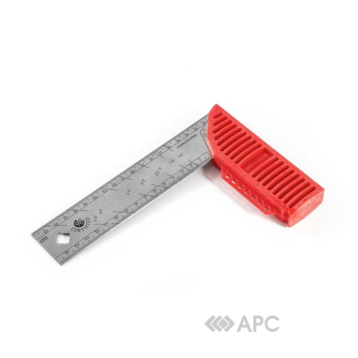 Кутник Kapro Ledgend не лише чудово визначає прямий кут, але й має можливість відтворити кут 10,15, 22,5, 30, 36, 45, 50 градусів. Дана функція дуже легко реалізується: нульовий кут знаходиться на ручці, а решта - на металевій лінійці. Червона ручка виконує ще одну функцію - фіксатора. Підтримуюча кромка не дозволяє інструмента зісковзнути. Лінійка виконана з нержавіючої сталі та має розмітку з двох сторін.