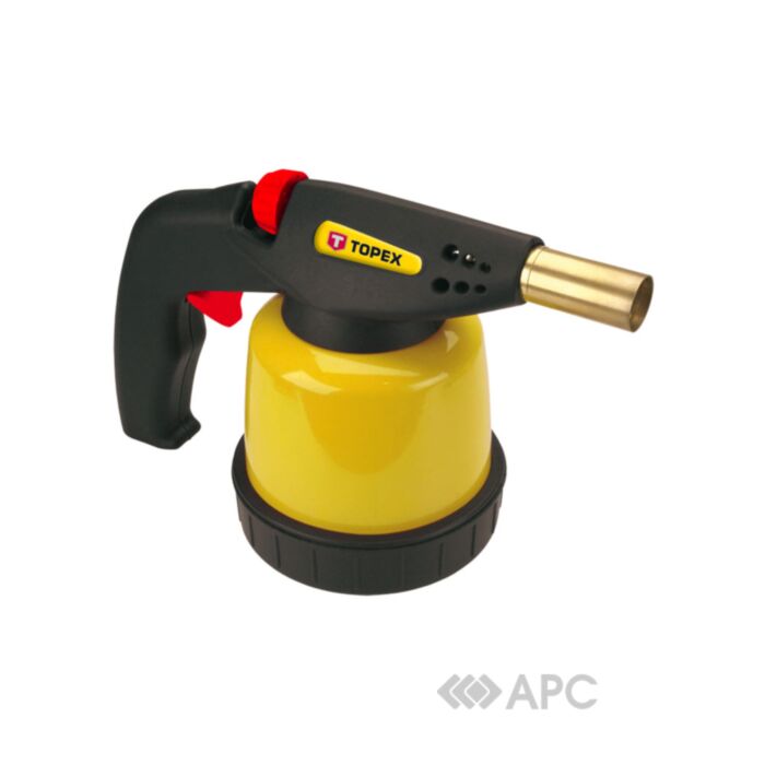 Лампа паяльна Topex 44E141 використовується для робіт в побутових цілях, застосовується для плавлення виробів з пластмас, для роботи з легкоплавкими сплавами і металами, зокрема для їх пайки і зварювання, для розігріву різних предметів тощо. Дана модель обладнана поворотним вимикачем для регулювання довжини полум'я. Важливою перевагою лампи є наявність п'єзопідпалу, ємкість балона 190 мл. Паяльна лампа створює полум'я температурою близько 1350 °С, витрата газу 180 г/год.