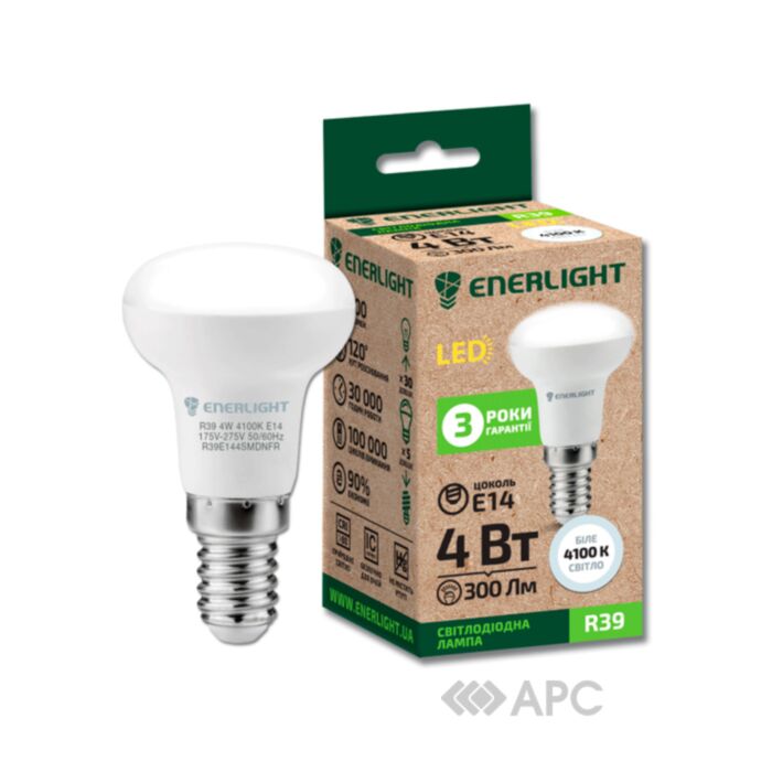 Світлодіодна лампа Enerlight м'яко реагує на навантаження в процесі вмикання і вимикання, не випромінює ультрафіолет, не містить ртуті і не вимагає спеціальної утилізації. Широко використовується для організації освітлення в житлових, офісних і підсобних приміщеннях.
