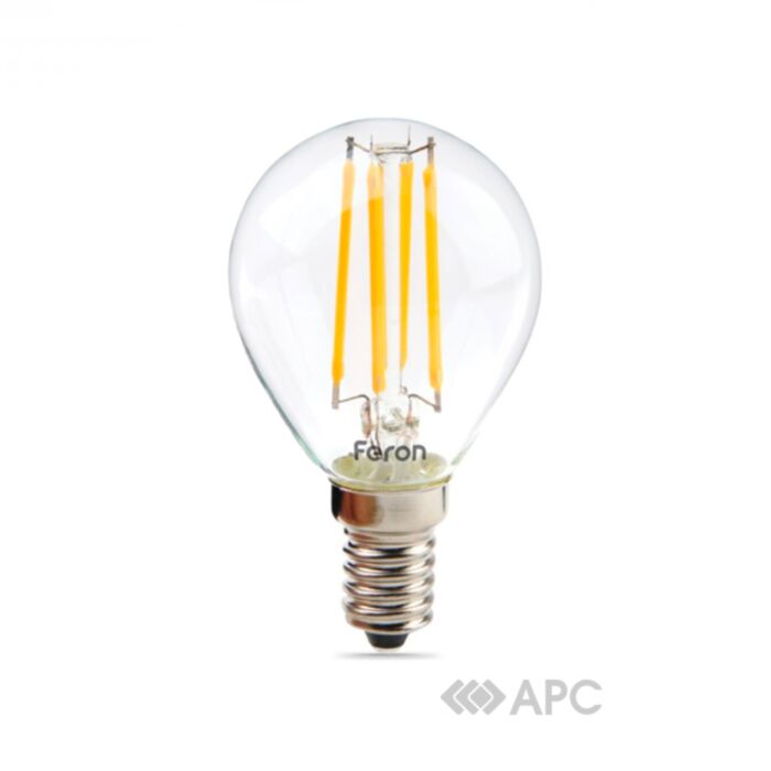 Лампа світлодіодна Feron Filam LB-161 P45 230V 6W E14 4000K є моделлю зниженого енергоспоживання. Світлодіоди дуже економічні, ефективні і безпечні завдяки тому, що набагато більше енергії перетворюється в світлову, а не теплову, як у випадку ламп розжарювання. Лампочки з типоформою цоколя E14 ще називають «міньйонами» через розмір. Такі лампочки часто використовуються для точкового або додаткового освітлення, нічників, люстр. Дуже часто використання E14 замість E27 значно знижує витрату енергії. Перед використанням в побутовій техніці ознайомтеся з технічним паспортом вашого пристрою.