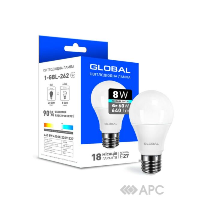 Лампа світлодіодна Global LED 1-GBL-262 A60 8W 4100K 220V E27 виконана в класичній формі. Це лампа універсального застосування і може використовуватися як для внутрішнього, так і для зовнішнього освітлення житлових і комерційних приміщень.