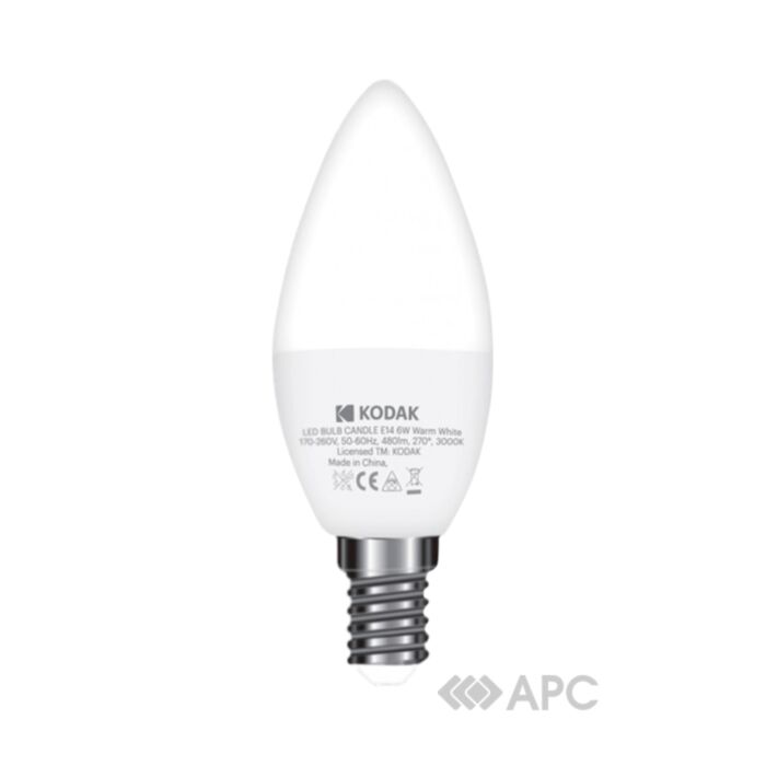 Лампа KODAK C37 E14 6W 220V 3000K забезпечить 25 тисяч годин яскравого та стабільного освітлення. Модель призначена для використання у внутрішніх приміщеннях. Продуманий дизайн та особливості конструкції гарантують стабільне освітлення з широким кутом розсіювання. Лампочка забезпечує яскравий світловий потік без мерехтіння та перебоїв. Led-лампа оснащена захистом від перепадів напруги та перегріву.