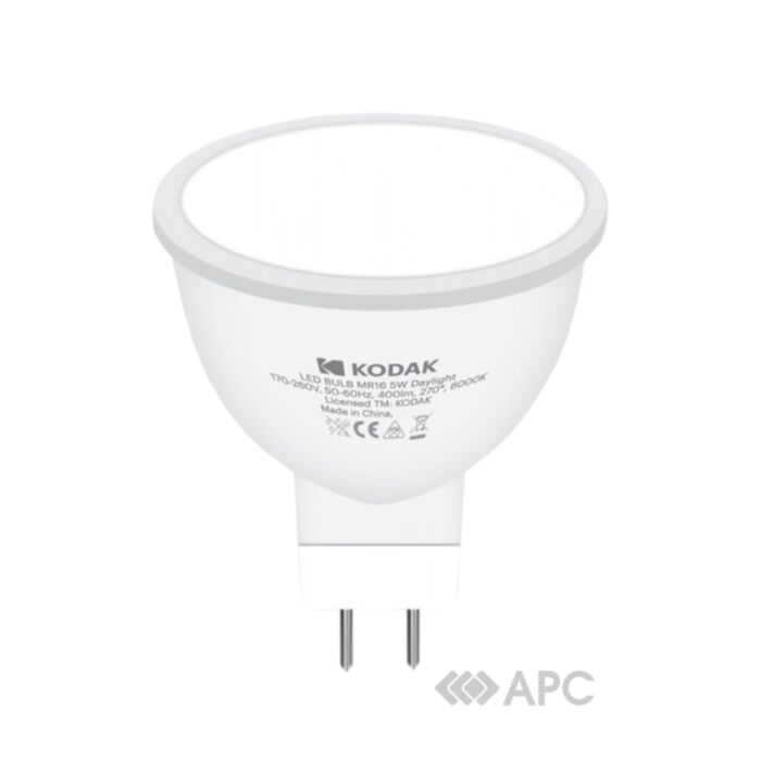 Лампа led KODAK MR16 GU5.3 5W 220V 6000K надійний та якісний освітлювальний прилад, який забезпечить стабільний світловий потік впродовж 25 000 годин. Виріб суттєво зменшує витрату електроенергії, що береже не лише ваші гроші, а й навколишнє середовище. Приємне освітлення легко сприймається та не втомлює очі. Ефект мерехтіння відсутній.