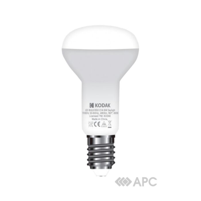 Лампа led KODAK R50 E14 6W 220V 6000K надійний та якісний освітлювальний прилад, який забезпечить стабільний світловий потік впродовж 25 000 годин. Виріб суттєво зменшує витрату електроенергії, що береже не лише ваші гроші, а й навколишнє середовище. Приємне освітлення легко сприймається та не втомлює очі. Ефект мерехтіння відсутній.