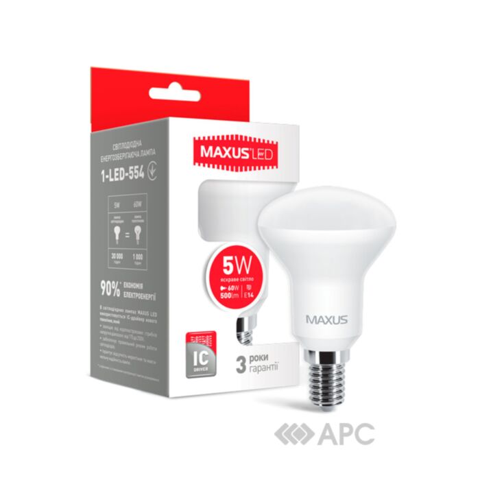 Лампа світлодіодна Maxus LED 1-LED-554 R50 5W 4100K 220V E14 - джерело світла рефлекторного типу, яке відрізняється доступною ціною і безперебійним якісним освітленням протягом багатьох років. Виріб не нагрівається, використовує мінімум електрики і є безпечнішим за своїх люмінесцентних аналогів або ламп розжарювання.