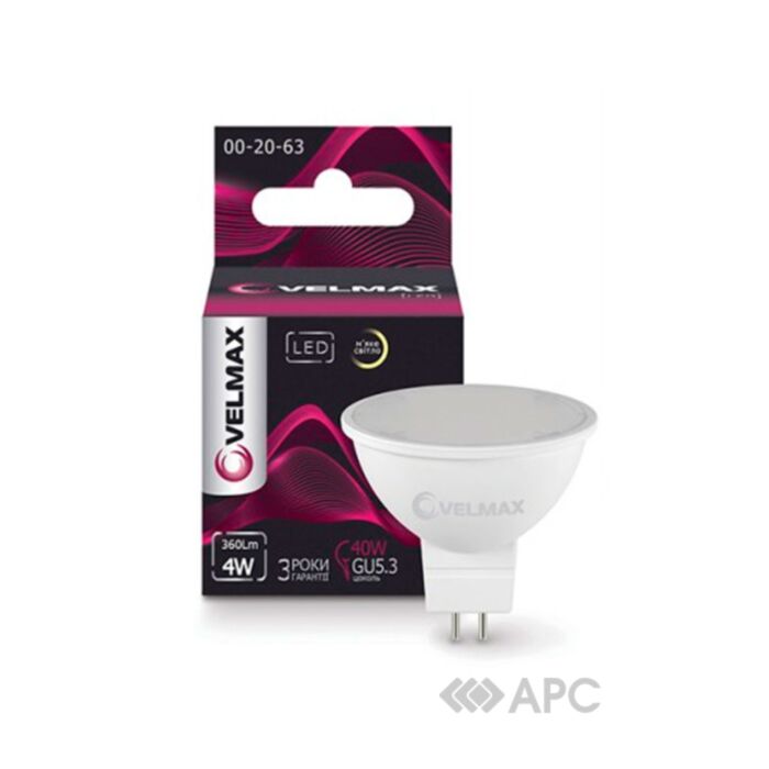 Лампа світлодіодна Velmax LED V-MR16 4W GU5.3 3000K 360Lm кут 120° в каталозі ARS