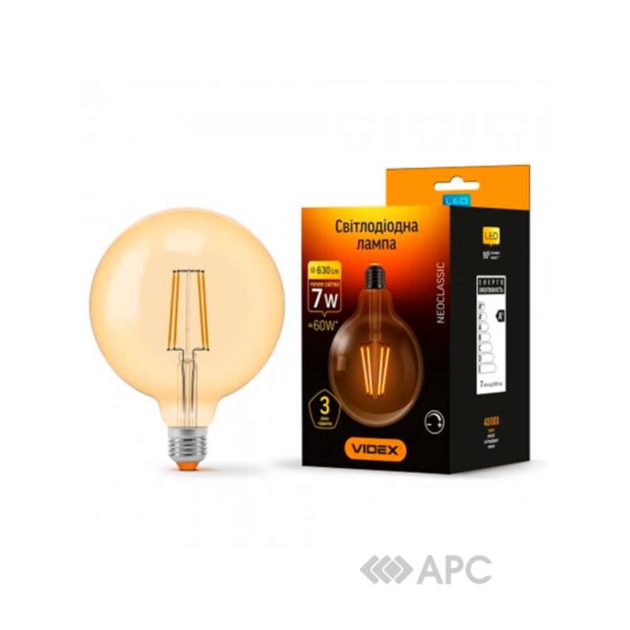 Наявність у магазинах товару Лампа світлодіодна Videx LED 295527 Fil-nt G125FAD 7W E27 2200K
