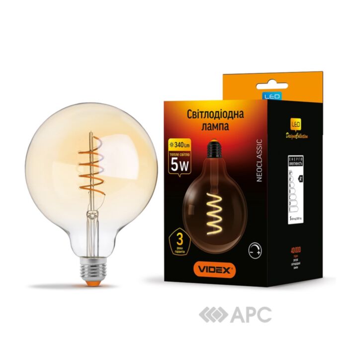 Лампа світлодіодна Videx LED 297750 Fil-nt G125FASD 5W E27 2200K димерна в каталозі ARS