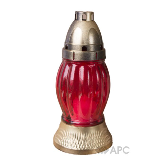 Лампадка скляна Oreola велика — це чудовий вибір для створення атмосфери спокою та пошани на кладовищі чи під час поминальних заходів. Виготовлена з міцного, якісного скла з пластиковою кришкою, яка захищає від вітру та опадів. Виріб має висоту 19 см та діаметр горловини 5,5 см, що робить його зручним варіантом для розміщення свічки різних діаметрів.
