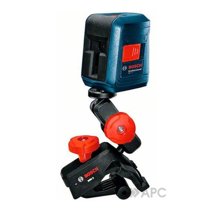 GLL2+MM2 (0601063A01) — професійний лазерний нівелір. Цей прилад і подібні йому служать для проектування точок/ліній на поверхню, що дозволяє проконтролювати вертикаль або горизонталь поверхні, а також точність прямих кутів. Забезпечує точну розмітку, яка допомагає в майбутній роботі для вирівнювання стін, стелі, підлоги і так далі. Діапазон вимірювання складає 10 м. Похибка на рівні ± 0,5 мм/м. Перехрестя: Так. Живлення від 2 батарей типу АА.