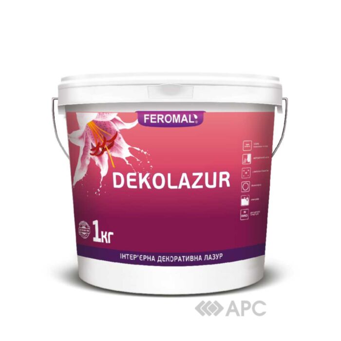 Лазур інтер'єрна Feromal Dekolazur Clasic — прозора, глянцева, водна акрилова лазур для створення декоративних акцентів. Придатна до використання на рельєфних поверхнях, а саме: структурних фарбах, шпалерах під пофарбування, декоративних штукатурках, склотканинах. Володіє високою адгезією до основи, стійкістю до стирання. Для зовнішніх та внутрішніх робіт. В залежності від позначення на упаковці може містити блискітки: – Gold – блискітки золотого кольору; – Silver – блискітки срібного кольору; – Ultra – блискітки голографічні; – Classik – прозора, без блискіток. Витрати: 1л покриває до 12 м2 поверхні при одноразовому нанесенні. Роботи виконувати при температурі навколишнього середовища, матеріалу та основи від +5°С до +30°С. Час висихання покриття до початку експлуатації - 24 год. при температурі навколишнього середовища +20°С та вологості 60% Купити лазур інтер'єрну Ferozit Dekolazur Clasic декоративну можна в нашому інтернет-магазині з доставкою у будь-яку точку України.