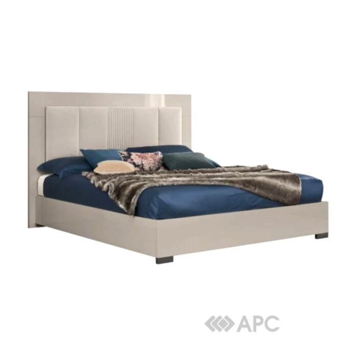 Ліжко Alf Group Claire PJCL0150 QS 5FT pearl line 160*200 см - це втілення елегантності та стилю в класичній спальні. Оздоблення Pearl line eco veneer high gloss вражає своєю вишуканістю, завдяки неймовірному шовкографічному вертикальному малюнку. Спальне місце розміру 160*200 см вражає своєю дизайнерською увагою до деталей. Спинка має характерний м'який профіль, обтягнутий штучною шкірою з вертикальними швами. Корпус виготовлений з екошпону світлого дерева, який додає тепла та затишку кімнаті, а металеві елементи сірого кольору створюють сучасний та оригінальний акцент.