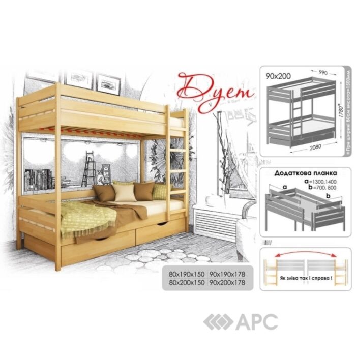 Створене з душею і умінням дерев'яне Ліжко двоярусне Дует принесе тепло і затишку у Ваш будинок. Кожна деталь зроблена руками професіоналів своєї справи.