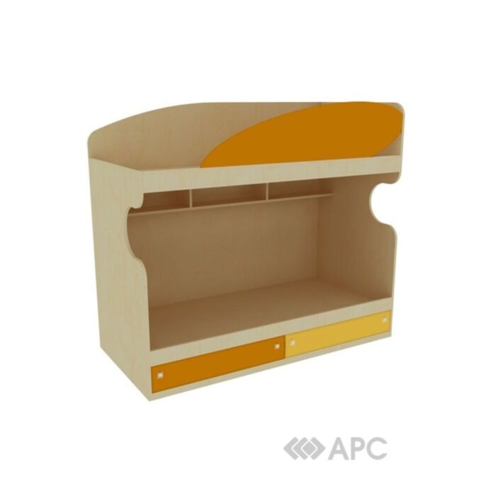 Дитяче та підліткове двоярусне ліжко для двох дітей, з двома висувними ящиками для постільної білизни. Додаткові полички біля нижньої ліжечка дозволяють створити індивідуальний простір для дитини.