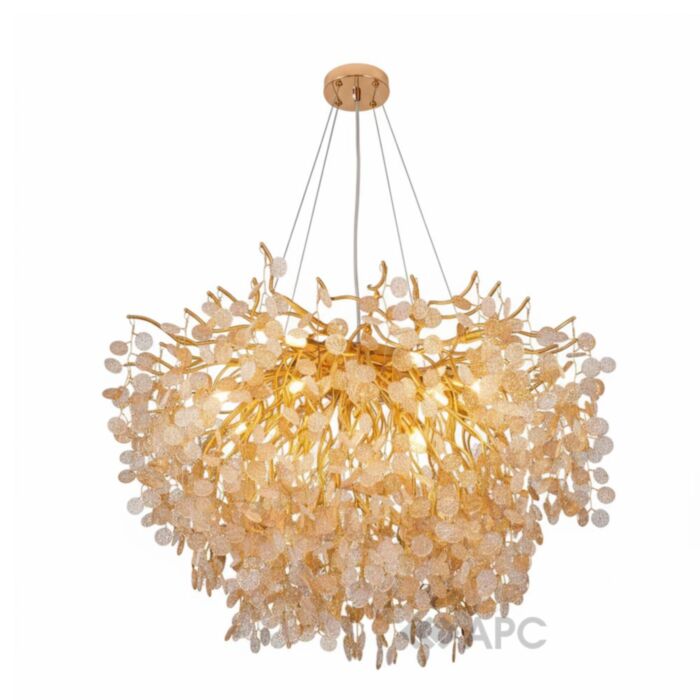 Люстра підвісна Sirius WM-7002 500-G9*6-52 GD – це вишуканий елемент освітлення, що поєднує сучасний дизайн і розкішний золотий відтінок, створюючи в інтер'єрі атмосферу елегантності та затишку. Діаметр 500 мм робить її ідеальним вибором для освітлення вітальні, їдальні або просторої спальні. Прозорий кришталь в бурштинових відтінках та золотиста основа надає виробу шляхетності та розкоші, водночас створюючи тепле, м'яке освітлення. Люстра оснащена шістьма джерелами світла з цоколем G9, що дозволяє використовувати як світлодіодні, так і галогенні лампи. Завдяки такому рішенню, вона забезпечує достатньо яскраве та рівномірне освітлення. Цей світильник є чудовим вибором для тих, хто прагне додати своєму простору сучасної елегантності з ноткою класичного шарму.