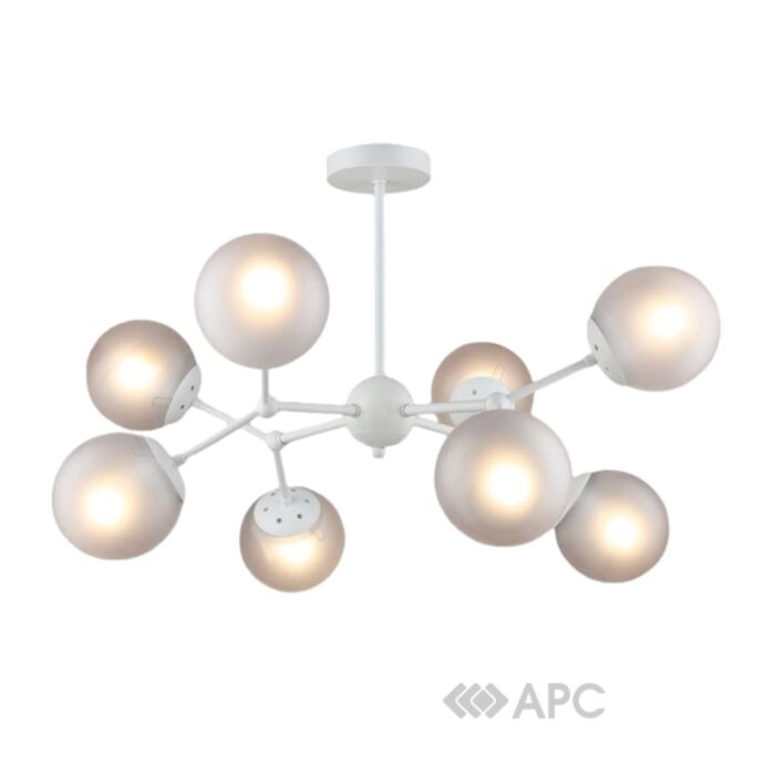 Люстра Sirius B N6097/8 WT, відома як "Молекула", є сучасним стельовим освітлювальним приладом, що додасть оригінальності та стилю вашому інтер'єру. Каркас люстри з білого металу, що надає легкості та елегантності, роблячи її ідеальним вибором для сучасних і мінімалістичних інтер'єрів.