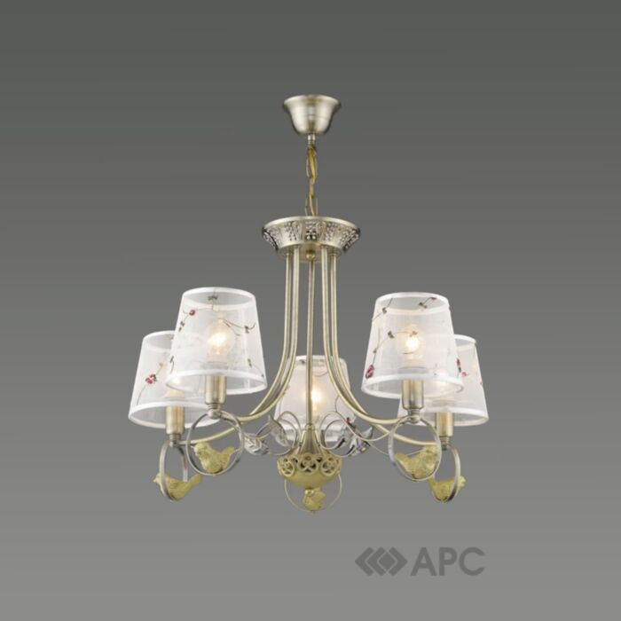 Люстра Sirius Д TC1608-5 — класичний підвісний варіант на п'ять джерел освітлення. Об'єднання металу та текстилю в одному виробі створює неповторний ефект. Розмір цоколя лампочок: E14. Як альтернатива традиційному E27, лампочки з меншим цоколем витрачають менше електроенергії. Якщо ви є шанувальником класики і витонченості, то дана модель чудово впишеться в інтер'єр вашого житла.