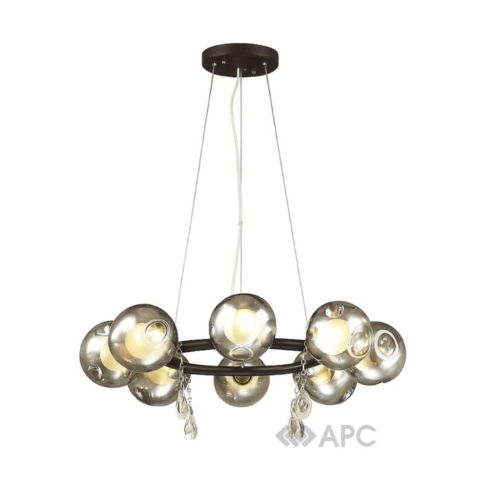 Люстра Sirius H288-8 BK+CR+SM – це сучасний освітлювальний прилад, який завдяки своїй конструкції та колірній гамі здатний стати центральним елементом великих приміщень, забезпечуючи як функціональне освітлення, так і сильний візуальний акцент. Розгалужена конструкція з восьми джерел світла дозволяє розмістити вісім скляних плафонів таким чином, щоб забезпечити рівномірне освітлення великих просторів. Плафони у формі кулі передбачають використання ламп з цоколем типу G9, вони надійно закріплені до металевого кільця, яке опущене від основи на довжину 1м. Модель має діаметр 80 см, що візуально заповнює простір і забезпечує необхідний світловий потік. Ця люстра є не просто джерелом світла, а справжнім витвором мистецтва, що здатний трансформувати простір, надаючи йому особливого шарму та індивідуальності.