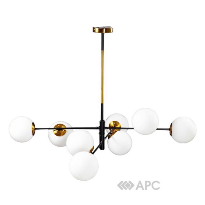 Люстра Svet SN-9715-8 BK+DGD – це розкішний освітлювальний прилад, призначений стати центральним елементом інтер'єру, створюючи потужне та водночас витончене освітлення. Має розгалужену конструкцію, де вісім плафонів розташовані навколо центральної основи, що робить її ідеальною для освітлення просторих кімнат, віталень, залів або їдалень, забезпечуючи високий рівень освітленості та рівномірне розсіювання світла. Чорний колір в поєднанні з золотим створює ефект глибини, об'єму та візуальної динаміки. Білі матові плафони виразно контрастують з основою, що дозволяє створити виразний візуальний ефект, який змінюється залежно від кута огляду та інтенсивності освітлення. Вона чудово впишеться в сучасні стилі, такі як ар-деко, модерн, еклектика або навіть деякі варіації класичного стилю з сучасним акцентом. Ця люстра стане не лише ефективним джерелом світла, але й розкішним художнім об'єктом, що притягує погляди та створює неповторну атмосферу в приміщенні.