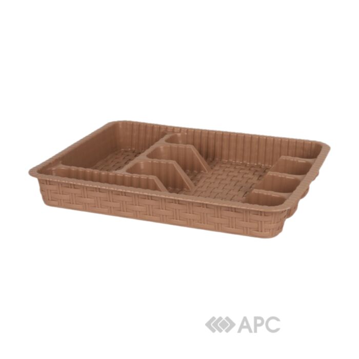 Лоток для столових приборів Violet House Ротанг 0755 29*37 см капучино – це зручний аксесуар для сучасної кухні від провідного турецького виробника. Органайзер для посуду актуальний як для домашнього вжитку, так і в ресторанах, кафе та їдальнях. Він дозволяє зручно зберігати виделки, ложки, ножі та інше кухонне приладдя в порядку та чистоті. Високоякісний пластик в сучасному дизайні забезпечує легке очищення та тривалу експлуатацію виробу. Наявність великої кількості отворів забезпечує відмінну вентиляцію та захист від зайвої вологи. Екологічний матеріал лотка безпечний для здоров’я людей та навколишнього середовища.