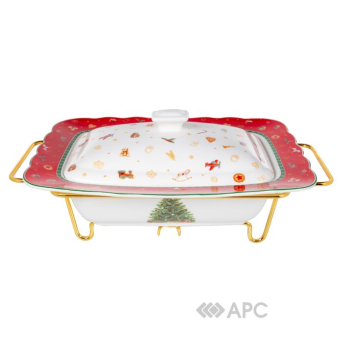Марміт Lefard Christmas Delight 985-210 31*23*13 см – це витончений та функціональний предмет святкового посуду для елегантної подачі страв і підтримання їхньої температури під час різдвяних та новорічних застіль. Це прямокутна порцелянову посудина з кришкою, що встановлюється на спеціальну підставку з металу. Дизайн виконаний у тематиці "Christmas Delight" з переважанням червоного кольору, що створює урочистий та теплий настрій за столом. Розмір 31*23*13 см робить його достатньо містким для подачі гарнірів, тушкованих страв, м'ясних чи овочевих рагу або інших гарячих страв для невеликої компанії. Використання марміту дозволяє господарям не хвилюватися про те, що страви охолонуть під час тривалого застілля, забезпечуючи комфортну подачу від початку до кінця свята. Це не лише практичний, але й надзвичайно декоративний елемент сервірування, який стане чудовим доповненням до різдвяного посуду.
