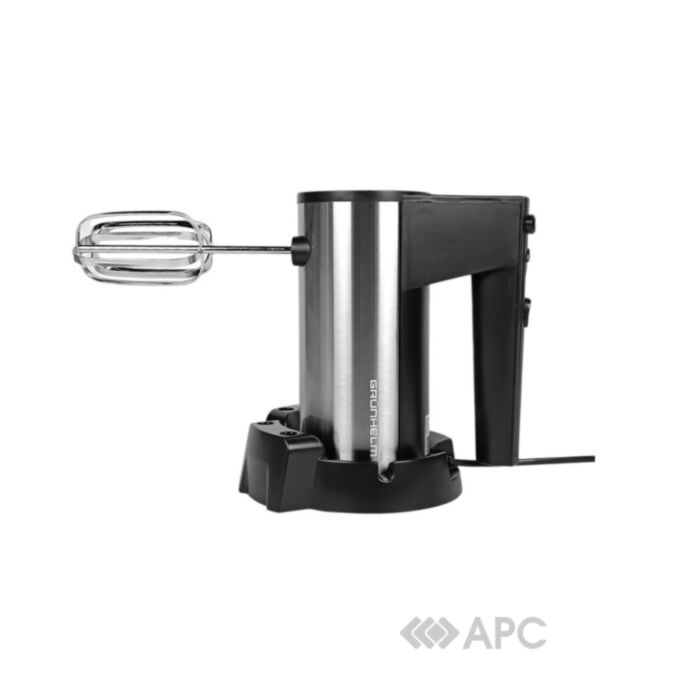 До комплекту Grunhelm GRM629 входять два вінчики для якісного збивання та два гаки для замішування тіста, а також чаша, що робить набір повністю готовим до використання. Корпус виготовлений із міцного пластику, кабель довжиною 1,1 м забезпечує достатню свободу рухів, а компактні габарити (198х128х200 мм) дозволяють зручно зберігати пристрій навіть на невеликій кухні.