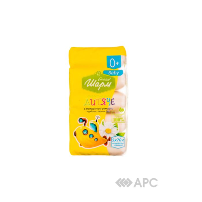 Мило туалетне Grand Шарм — це засіб, що підходить для ніжного очищення дитячої шкіри з самого народження. Натуральні, якісні компоненти сприяють легкому видаленню забруднень, не містять алергенів. Екстракт ромашки має заспокійливу дію, усуває запалення. Активна природна формула забезпечує ефективне зволоження, має пом’якшувальну дію на шкіру. Підходить для щоденного використання. У виробі присутній легкий, приємний аромат. Упакування містить 5 штук, вагою 350 г.