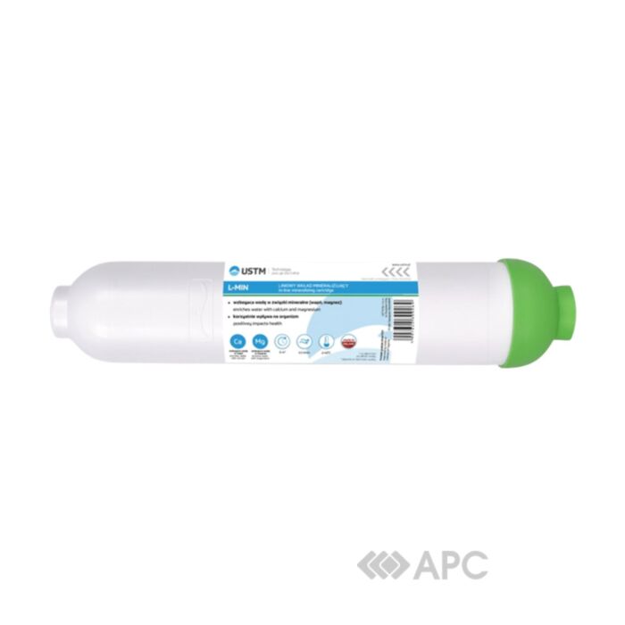 USTM L-MIN — мінералізатор для води, призначений для збагачення питної води мінеральними компонентами. Насичує воду натрієм, калієм, магнієм, кальцієм. Продуктивність моделі: 3 л/хв. Робоча температура води: до 30°С. Орієнтовний робочий ресурс: 6 місяців. Мінералізатор встановлюється на ділянці водопроводу таким чином, щоб забезпечити фінальне очищення і насичення мінералами, тобто після фільтрів грубої очистки і т.п.