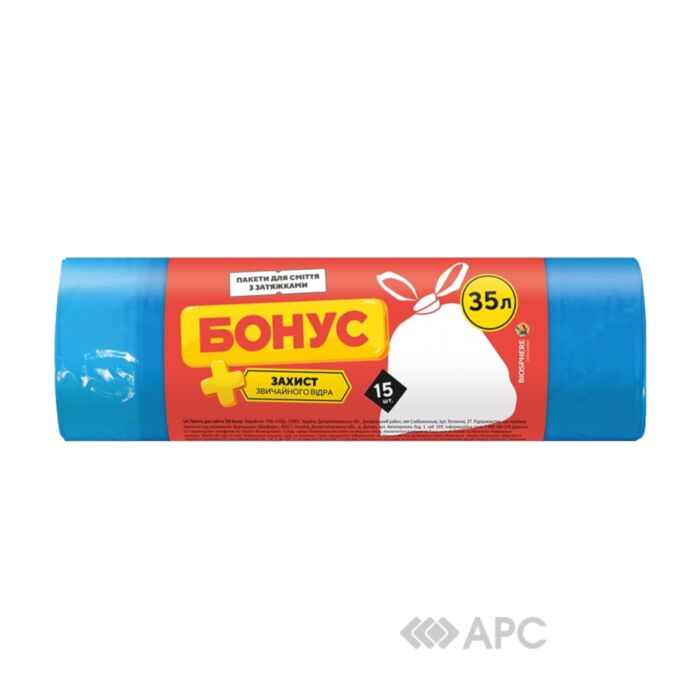 Пакети для сміття Бонус — це міцні, сміттєві мішки з прямим дном без швів, що допомагають тримати ваш робочий простір у чистоті. В основному використовуються на будівництві, у побуті чи садових роботах. Виготовляються із якісного, еластичного поліетилену, який має стійкість до проколів. Перевагою даної продукції є те, що мішки в рулоні попередньо розділені, їх не потрібно відривати, а також ручки затяжки, які спрощують процес виносу відходів. Об’єм 35 л підійде на сміттєвий бак 10 л, рулон налічує 15 штук.