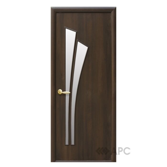 Модель Міжкімнатних дверей Новий стиль Лілія 800 мм горіх малюнок Р1 продовжує традицію використання флористичних мотивів в дизайні, що надзвичайно підходить до стилів прованс, кантрі, еко і робить ваше приміщення таким, яким ви його уявляли. Малюнок фігурного скла нагадує ніжно схилені гілки квітів, розміри скла доволі стримані, але пропускають світло - це додаткова окраса. Зовнішнє оздоблення - ПВХ-Deluxe (полівінілхлорид) використаний в цій моделі - це термопластичний, штучний матеріал.