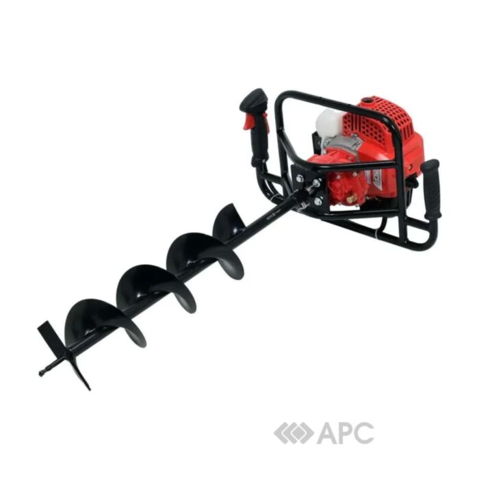 Сталеві ручки дають можливість бурити відразу обом в складних місцях. Вмонтована автоматична система зупинки двигуна у разі заклинювання механізму, яка гарантує безпеку користувачеві. Бензиновий двотактний двигун забезпечує якісну роботу на будь-якій ділянці. Максимальний діаметр бура 100, 150, 200 мм, потужність 1,4 кВт, 7000 об/хв.