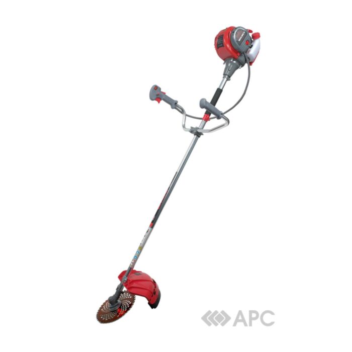 Мотокоса оснащена потужним бензиновим чотирьохтактним двигуном. Рукоятки велосипедного типу зменшують вібраційні хвилі, а ремневі кріплення гарантують зручний та комфортний робочий процес. Тримерна головка може працювати з волосінню 2,4 мм. Бензиновий бак розрахований на 0,65 літра палива. Ширина захоплення волосінню 43 см, ширина скошування ножем 25,5 см.