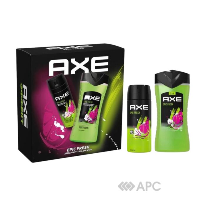 Набір AXE Epik Fresh забезпечує щоденну гігієну тіла та неймовірний заряд бадьорості та свіжості для чоловіків. До комплекту входить гель для душу та дезодорант спрей. Гель інтенсивно очищує шкіру, відлущує ороговілі клітини, стимулює захисні функції. Має нейтральний pH, зменшує кількість бактерій, сприяє розвитку корисної мікрофлори. Дезодорант гарантує надійний захист від поту та неприємного запаху на 48 годин, дарує відчуття свіжості та впевненості. Освіжаючий аромат грейпфрута та тропічного ананаса забезпечує свіжість та комфорт протягом дня. AXE Epik Fresh – чудовий вибір для подарунка близьким людям.