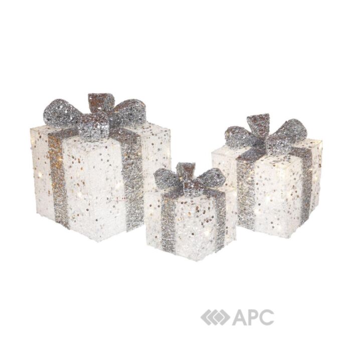 Набір декоративних подарунків BonaDi 3 шт — це справжнє зимове диво у Вашій оселі, що гарантуватиме казкову атмосферу. Він стане чудовим презентом на свята та викличе радість у дітей, дорослих та гостей будинку. М’яке LED-підсвічування забезпечить чарівний шарм приміщення на Новий Рік, Різдво, а також повсякденний вжиток. Колірна гама із білих та сріблястих відтінків ідеально підкреслить витонченість будь-якого інтер’єру. Для виробництва застосовувались комбіновані матеріали: метал та нейлон, що забезпечать тривалу експлуатацію статуеток та збережуть свої зовнішні характеристики та функціональні властивості на тривалий час.