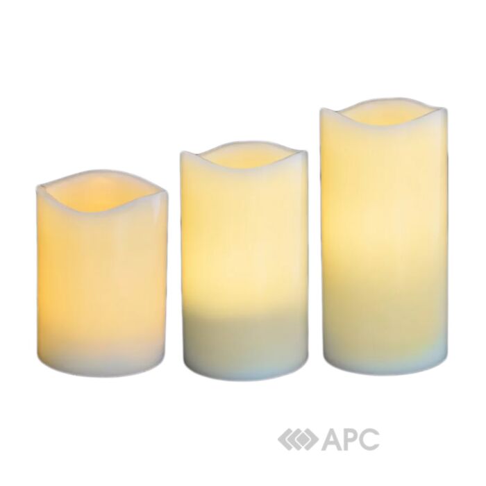 Набір декоративних свічок LED Так! Fun 710339 3 шт 7,5*10/12,5/15 см стане чудовим доповненням будь-якої вуличної декоративної композиції. Пластикові світлодіодні свічки створять святковий настрій та новорічну атмосферу.