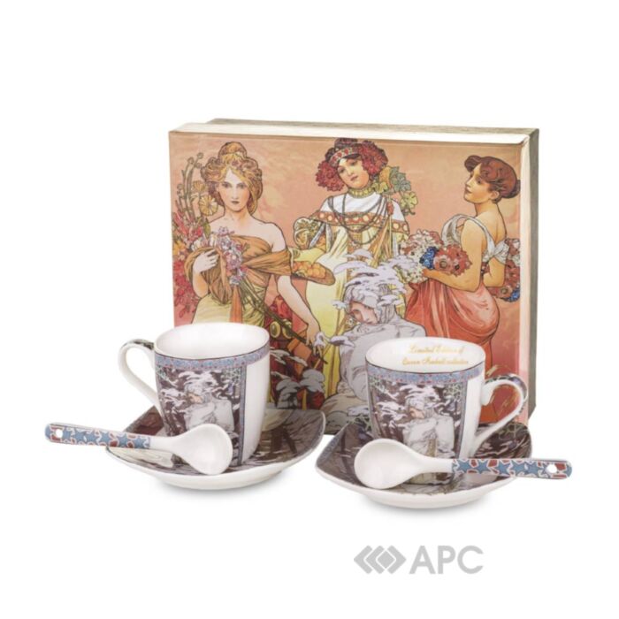 Набір для еспресо Art-Pol 143007 з блюдцем і ложкою стане неперевершеною окрасою столу та підкреслить вишуканий смак його власника. Лаконічний дизайн та висока якість сподобаються як вимогливому ресторатору, так і справжньому поціновувачу практичності та естетики. У комплект входять 2 чашки розміром 5,5*7,5*6 см; 2 блюдця - 10*10*1,5 см та 2 ложки - 12,5*2,5 см.