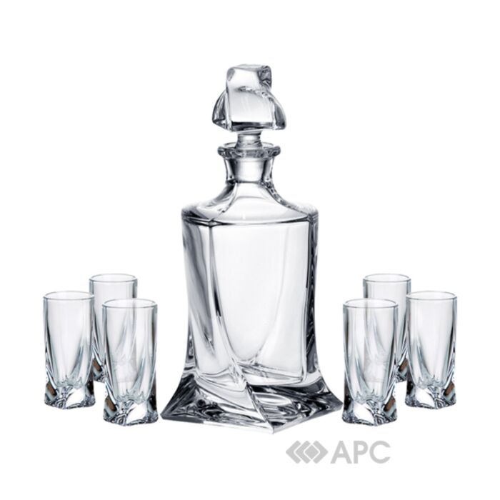 Bohemia - розкішний посуд з першокласного, відомого на весь світ скла Чехії. Богемське скло відрізняє прекрасна якість виробів і витончений зовнішній вигляд. Bohemia виробляє оригінальні бoкали, витончені фyжери, стильні вaзи, ніжний та іскристий кришталь. Набір для горілки Bohemia Quadro 99999-99A44 прикрасить святкування визначної події. Вироби без декору можна мити в посудомийній машині, користуючись програмою з низькою температурою.
