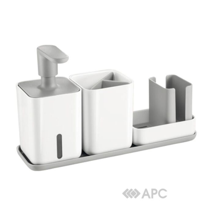 Набір для миття посуду Tescoma Puro — це зручне пристосування чеського виробництва, що необхідне кожній господині, адже допомагає красиво організувати побут. Містить місце для губки, ганчірки та дозатор у який можна перелити мийний засіб. Виготовлені вироби із високоякісного пластику в біло-сірому кольорі, допоможуть тримати робоче місце біля раковини у порядку. Дозволяється мити в посудомийній машині. Розміри виробу 28*8,5*17 см. см.