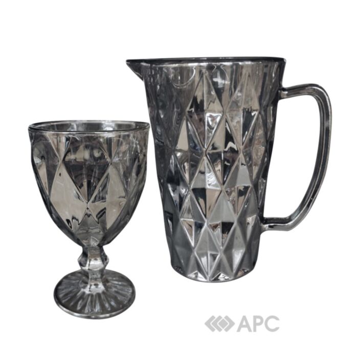 Набір Дзеркальний смарагд - це вишуканий комплект графітового кольору, який складається з 6 бокалів та 1 глечика. Вироби можуть стати не тільки незамінною частиною побуту, але і відмінним подарунком до будь-якого свята. Елегантні склянки з кольорового скла відрізняються декоративним дизайном та функціональністю.