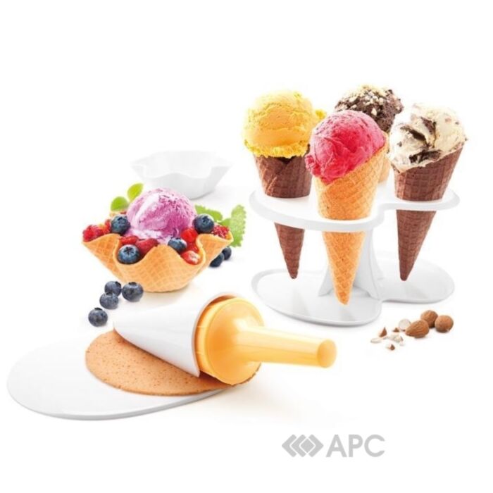 Купити набір для приготування вафельних ріжків та чаш для морозива Tescoma Della Casa 643184 можна в інтернет-магазині АРС. Доставка здійснюється у будь-який куточок України.