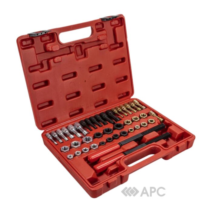 Набір для відновлення різьби Alloid НВР-1049 42 шт є комплектом інструментів, розроблених для швидкого та ефективного відновлення пошкодженої внутрішньої різьби. Він дозволяє відновити різьбу без необхідності заміни деталі. До складу набору входять гайкорізи: 1/4”, 5/16”, 3/8”, 7/16”, 1/2”, 9/16”, 5/8”, UNC 1/4”, 5/16”, 3/8 ”, 7/16”, 1/2”, 9/16”, 5/8”, UNF 6x1.00, 8x1.25, 10x1.25, 10x1.50, 12x1.25, 12x1.5, 12x1. 75мм - 21шт.; плашки: 1/4”, 5/16”, 3/8”, 7/16”, 1/2”, 9/16”, UNC 1/4”, 5/16”, 3/8”, 7/16”, 1/2”, 9/16”, UNF 6x1.00, 8x1.25, 10x1.25, 10x1.50, 12x1.25, 12x1.5, 12x1.75мм - 19шт.; різьбовий напилок: 0.75, 1.00, 1.25, 1.75, 2.00, 2.50, 3.0, SAE 9, 10, 11, 12, 13, 14, 16, 18, 20, 24, 27, 28, 32 - 2шт. Компоненти виготовлені з високоякісної сталі, що забезпечує їх міцність та довговічність, а вставки для відновлення різьби виготовлені з нержавіючої сталі, що робить їх стійкими до корозії. Набір розміщений в зручному пластиковому кейсі для зберігання та транспортування. Набір Alloid НВР-1049 є корисним інструментом для автомеханіків, ремонтників та домашніх майстрів, які займаються ремонтом та обслуговуванням автомобілів, мотоциклів, побутової техніки та інших пристроїв.