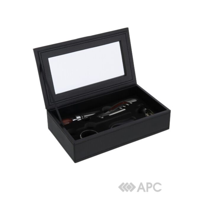 До набору входять усі необхідні інструменти, виготовлені з високоякісної нержавіючої сталі, що гарантує їх довговічність та надійність. Серед основних компонентів — класичний штопор для легкого відкривання пляшок, спеціальний ніж для зняття фольги, кільце-крапля, що запобігає стіканню вина по пляшці, термометр, наливник та елегантний стопер, який дозволяє герметично закрити почату пляшку. Всі аксесуари акуратно розміщені в стильному футлярі, який не тільки захищає їх від пошкоджень, але й надає набору завершеного вигляду. Це перетворює набір J-Line на ідеальний подарунок на весілля, ювілей або новосілля, підкреслюючи бездоганний смак його власника.
