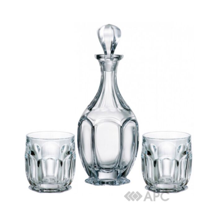 Набір для віскі Bohemia Safari 99999-99r83 7 предметів — це універсальний комплект у який входить графін з ковпачком та 6 склянок для алкогольного напою. Виготовлений із високоякісного, прозорого богемського скла, має вишукані грані та зручні форми. Вироби зроблені на сучасному обладнанні, гарантують безпеку, оскільки отримали відповідні сертифікати якості. Посуд дозволяється мити в посудомийній машині при низькій температурі. Даний комплект стане відмінним подарунком друзям, колегам або батькам. Об’єм склянок 250 мл, графіна 700 мл.