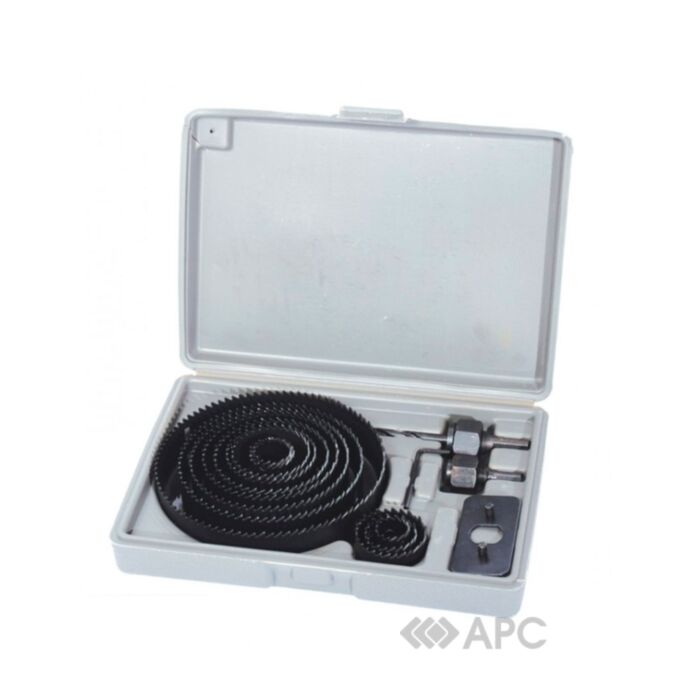 Набір фрез MasterTool 12-2572 - незамінний атрибут для створення отворів для розеток, розподільних коробок та при монтажі світильників. За допомогою насадок ви без проблем отримаєте потрібний круглий отвір в таких матеріалах, як гіпсокартон, пластик та м’які породи деревини. Високовуглецева сталь HCS гарантує чудові характеристики фрезів та забезпечує ефективне виконання роботи. Насадки варто використовувати при швидкості не вище 750-ти обертів на хвилину. В комплект входять: центруюче свердло, державка та кільцеві пили розмірами 9 мм, 22 мм, 25 мм, 28 мм, 38 мм, 44 мм, 51 мм, 64 мм, 76 мм, 89 мм, 102 мм, 127 мм.